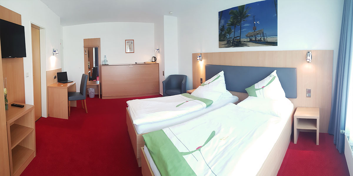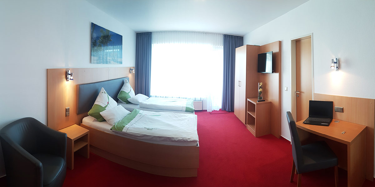 Unser gemütliches Doppelzimmer mit Balkon bietet Ihnen viel Platz und eine Entspannmöglichkeit bei Sonnenschein auf dem Balkon inklusive kostenlosem WLAN, TV & Telefon. Das Zimmer ist mit Einzelbetten der Größe 90x200cm ausgestattet. Das Zimmer lässt sich auch als Zweibettzimmer nutzen.